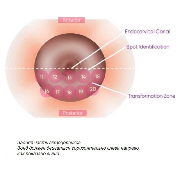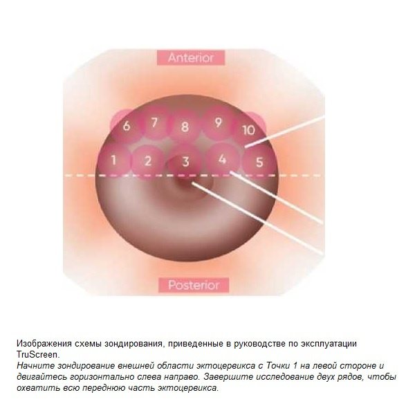 Исследование TS проводилось на аппарате TruScreen Pty Ltd (NZX/ASX: TRU) с участием женщины, находящейся в лиотомическом положении. Прибор производит оценку состояния шейки матки в режиме реального времени после активации одноразового фотоэлектрического датчика на >15 участках эпителия шейки матки.